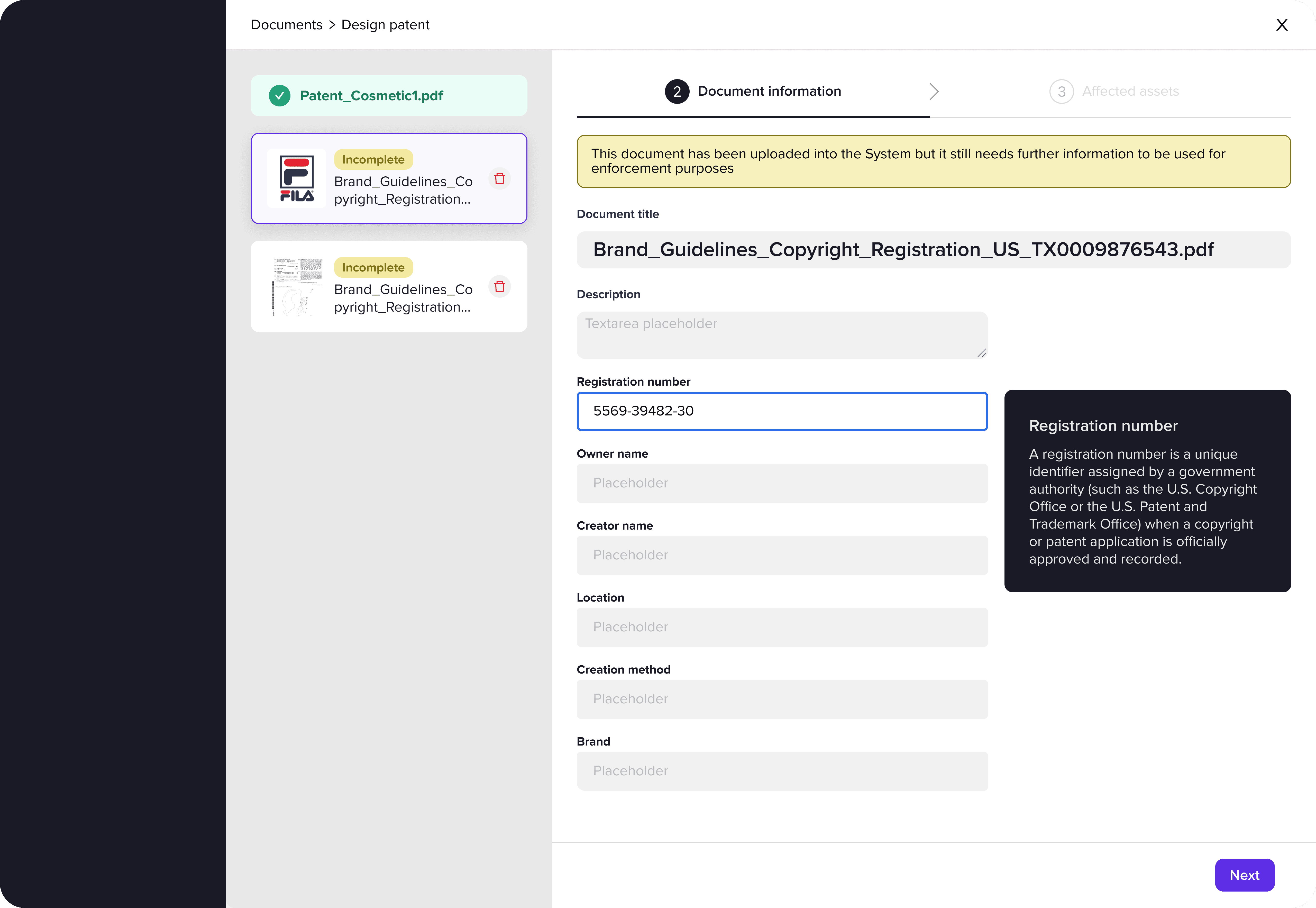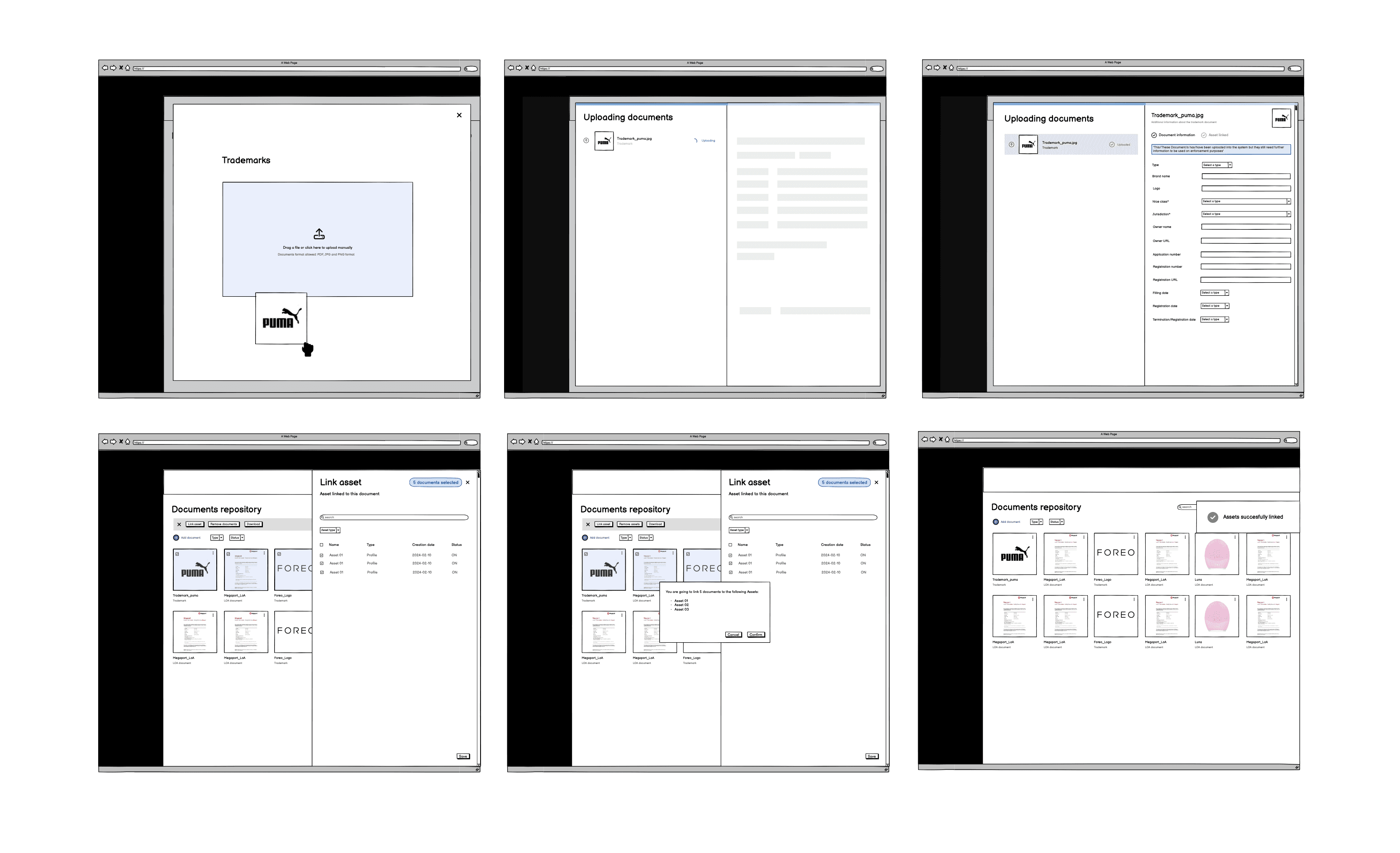 The challenge was to design a smooth process that supported both single and bulk uploads while asking users to provide all the required metadata. This also meant creating a seamless way to link documents to existing assets, so that enforcement actions could be carried out quickly without manual rework.