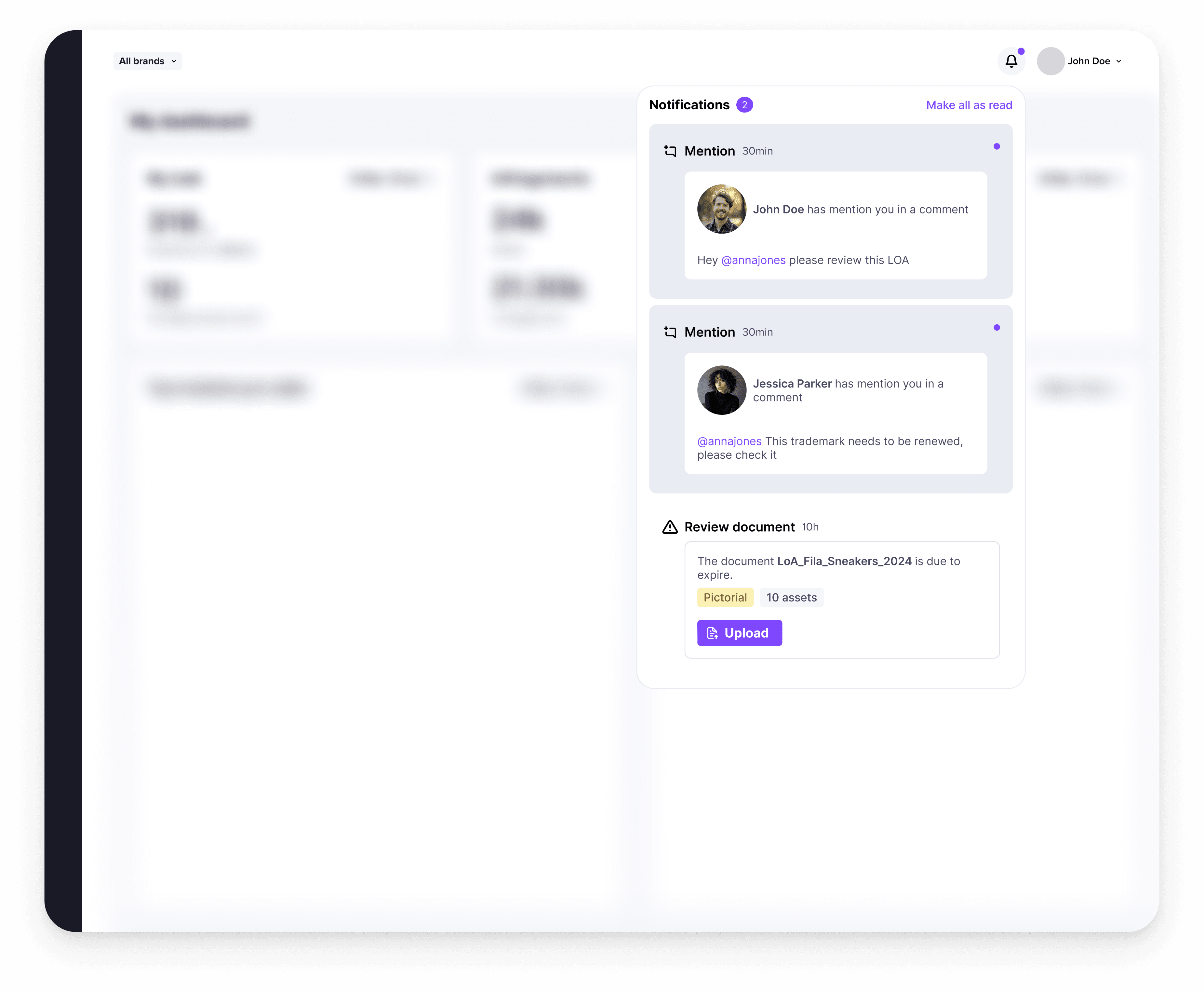Our Brand Protection platform currently lacks an in-app notification system. This gap has led to three major issues: